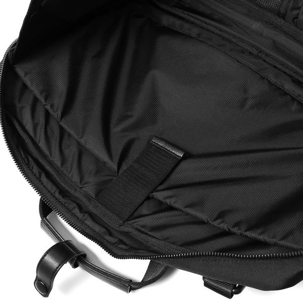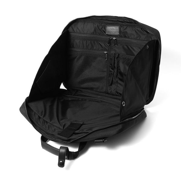 必要最小限の荷物を収納し、オンのスタイルにもよく映えるサイズ感とデザイン。内装の両脇スナップを外せば、PCを入れたまま操作ができる。テレワークにも最適な仕様。場所や人目を気にせず作業に集中することが可能です。