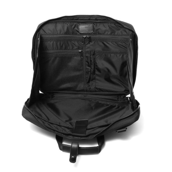 必要最小限の荷物を収納し、オンのスタイルにもよく映えるサイズ感とデザイン。内装の両脇スナップを外せば、PCを入れたまま操作ができる。テレワークにも最適な仕様。場所や人目を気にせず作業に集中することが可能です。