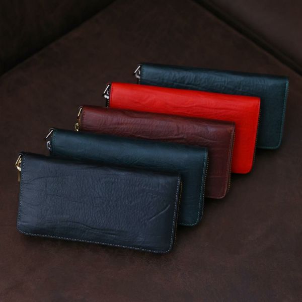 豊富なカード段や大きく開く小銭入れなど、収納力重視の人にぴったりなラウンドジップ長財布。 男らしい革の風合いが存分に楽しめます。
