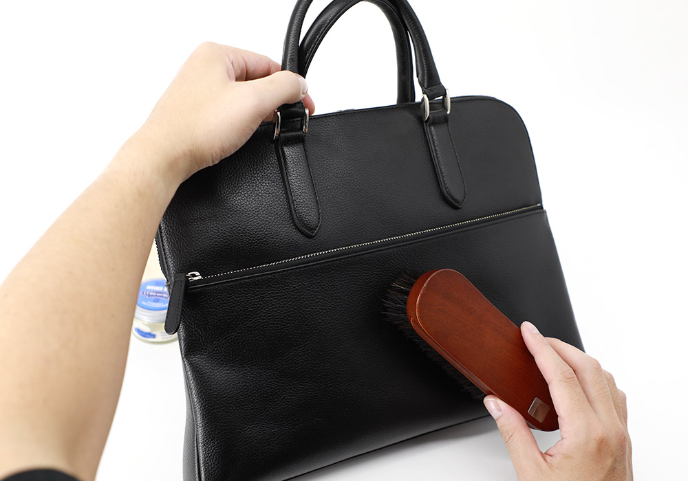 オイルを塗る前に、鞄の表面についた埃等の汚れをブラッシングによって取り除きます。鞄の中身を全て取り出し、用意したブラシで鞄全体のブラッシングを行いましょう。