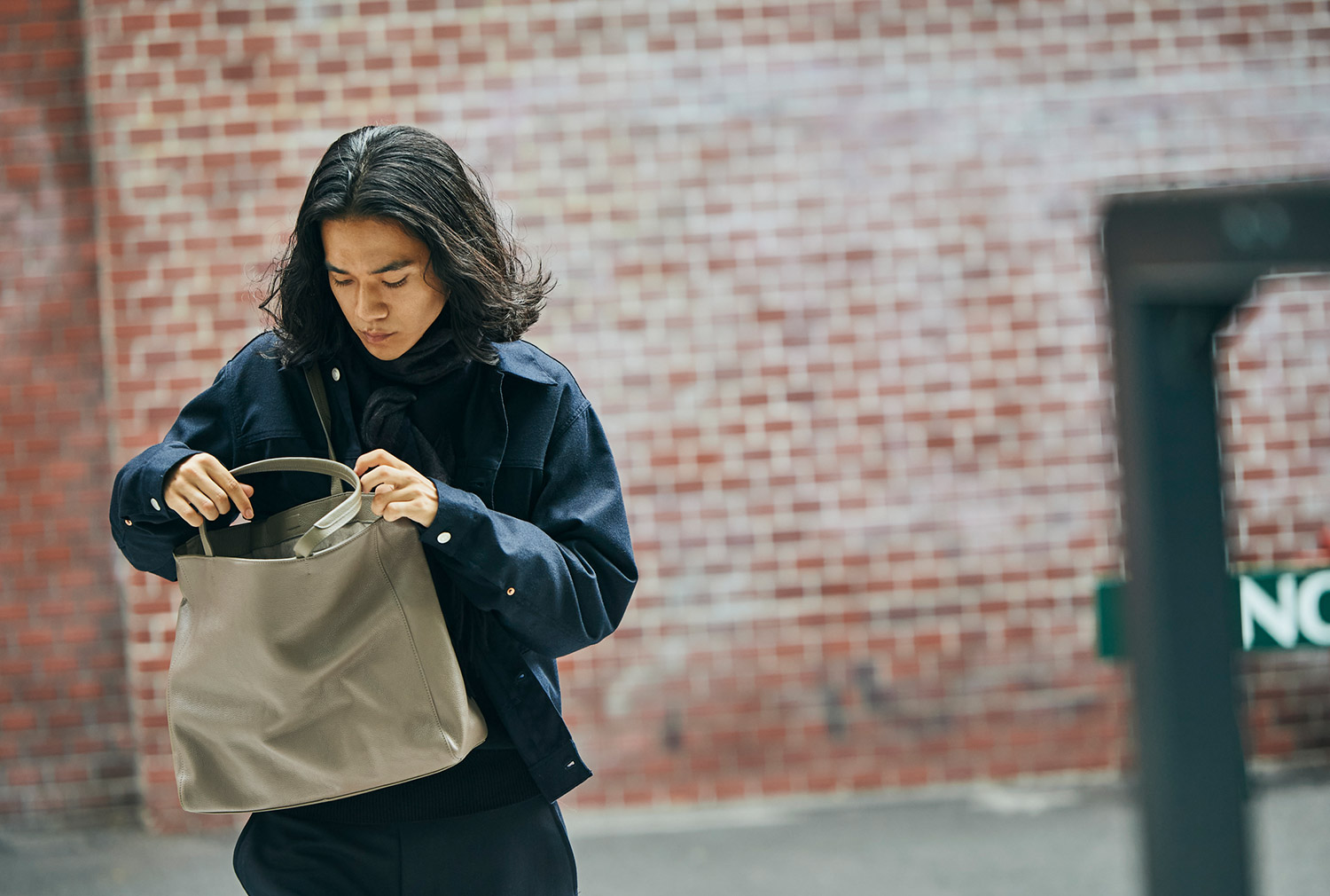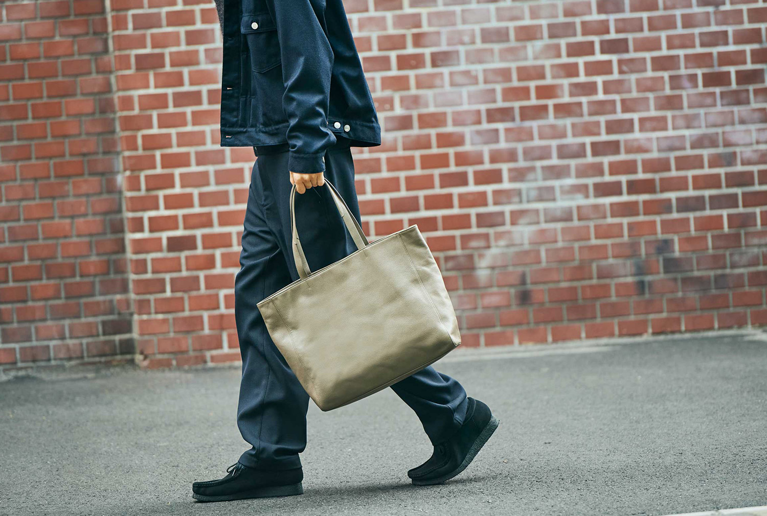 こんなときオープントップのトートバッグは、あまり深く考えずにモノを放り込めるのがいい。余計な仕切りも過剰な収納スペースも、ロゴさえも必要ない。見失いがちな鍵やスマホを仕舞える最低限のポケットさえあれば、あとは自分で仕分ければいい。
