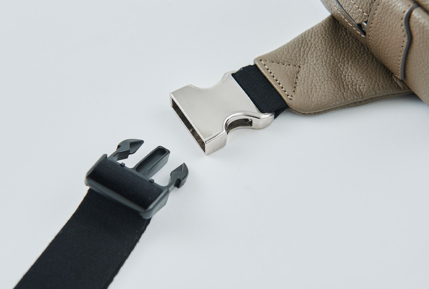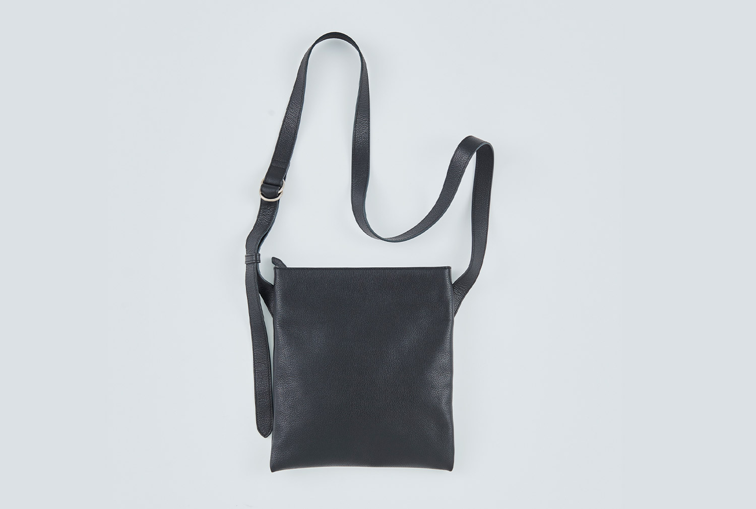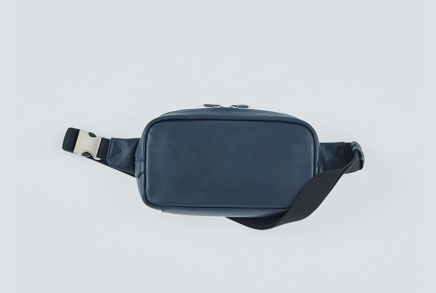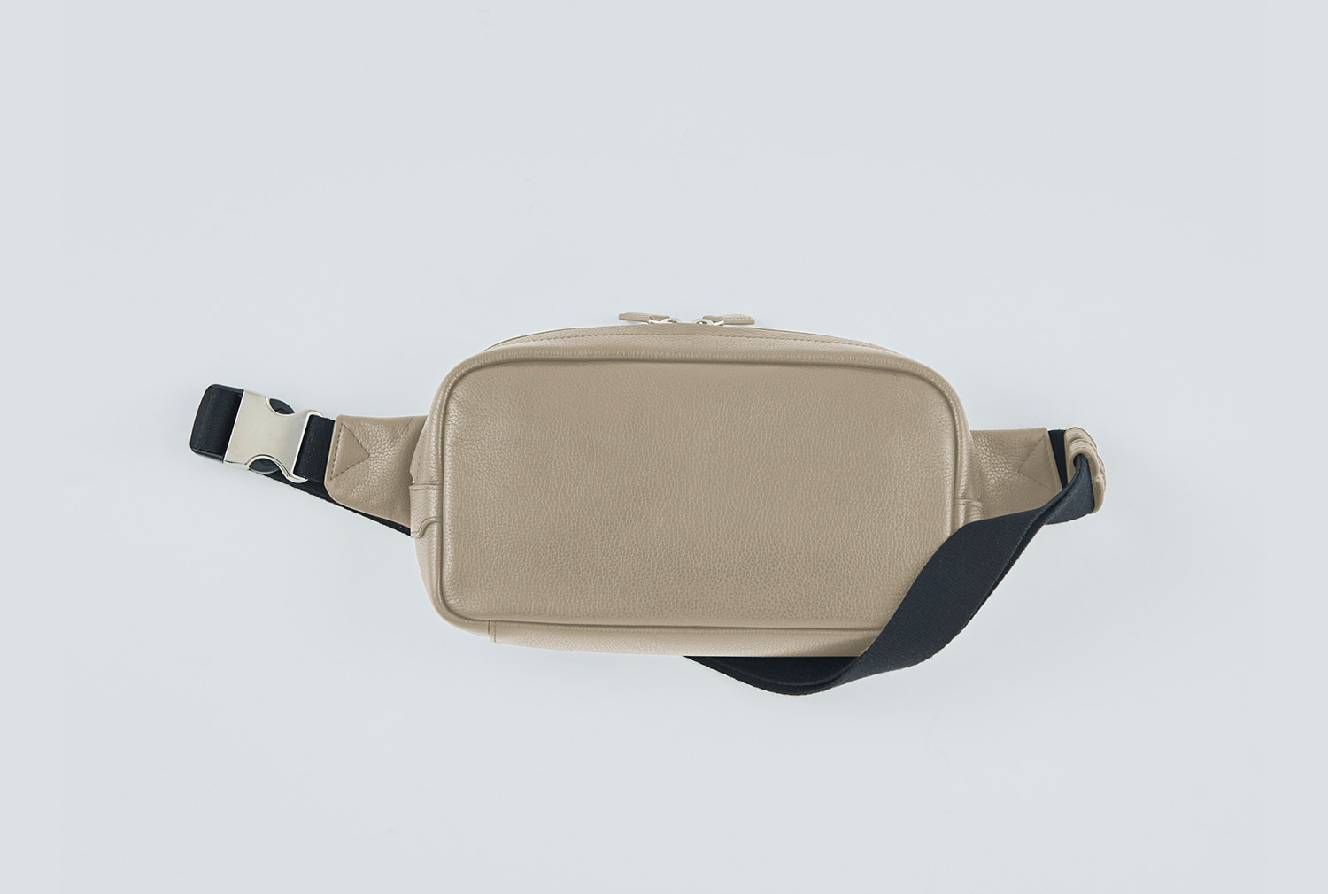 表にはシュリンクレザーを、背面にはメッシュをあしらい、上品なルックスと快適性を兼ね備えたボディバッグ。ポケット4つとファスナーポケット1つを備え、ストラップはワンタッチで着脱できるバックル仕様に。目立たないようにレザーをかぶせた天マチのファスナーは両開き使用で、左右どちらの肩に掛けても中身にアクセスしやすいように設計されている。マチは6cmと薄く、アウターのインに差しても邪魔になりにくい。
