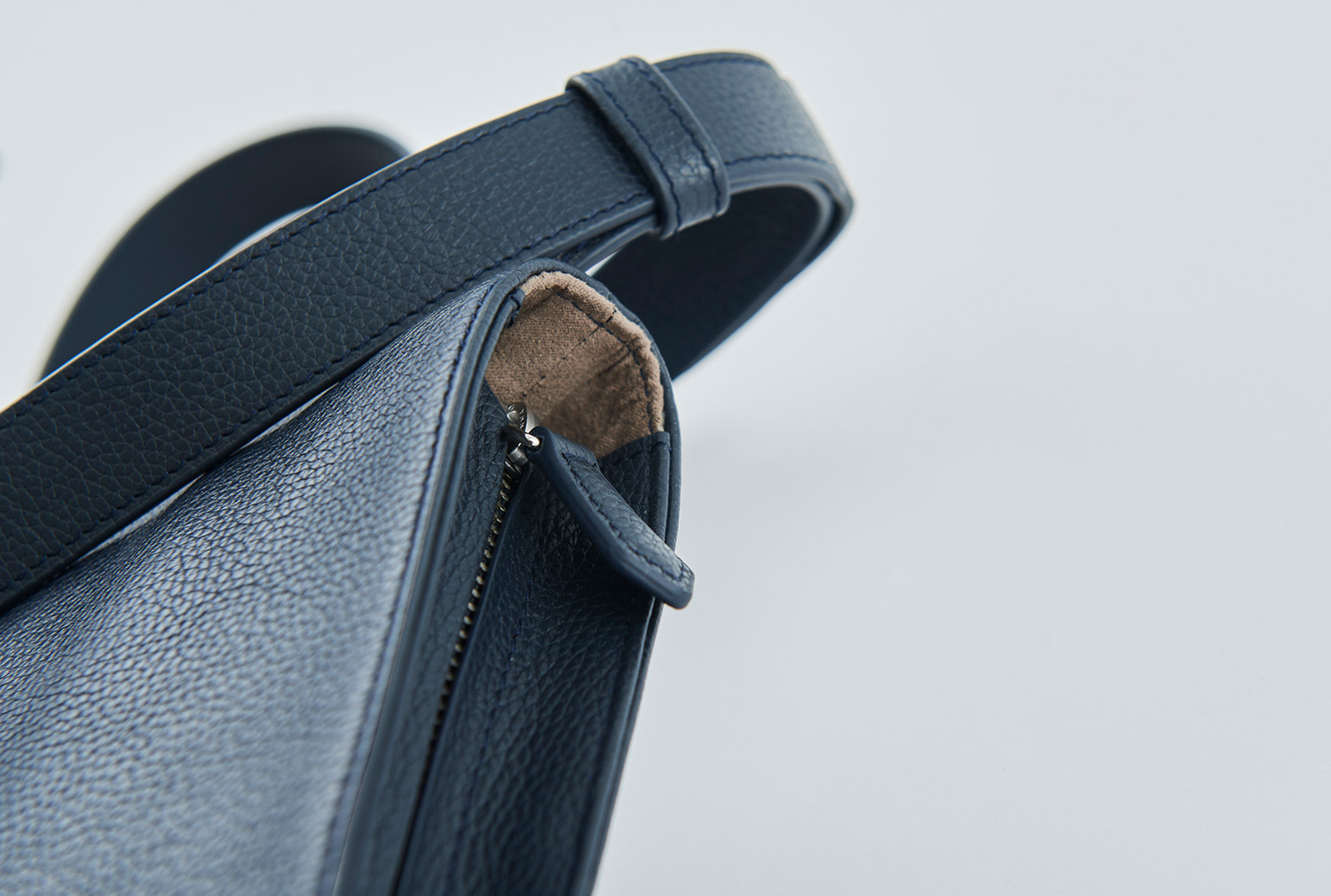 マチは12cmとしっかり確保され、たとえば途中で荷物が増えても安心な容量設定。肩掛けしたまま中身にアクセスしやすいよう、ストラップの長さ設定にもこだわっている。