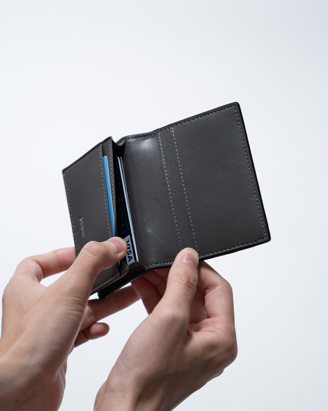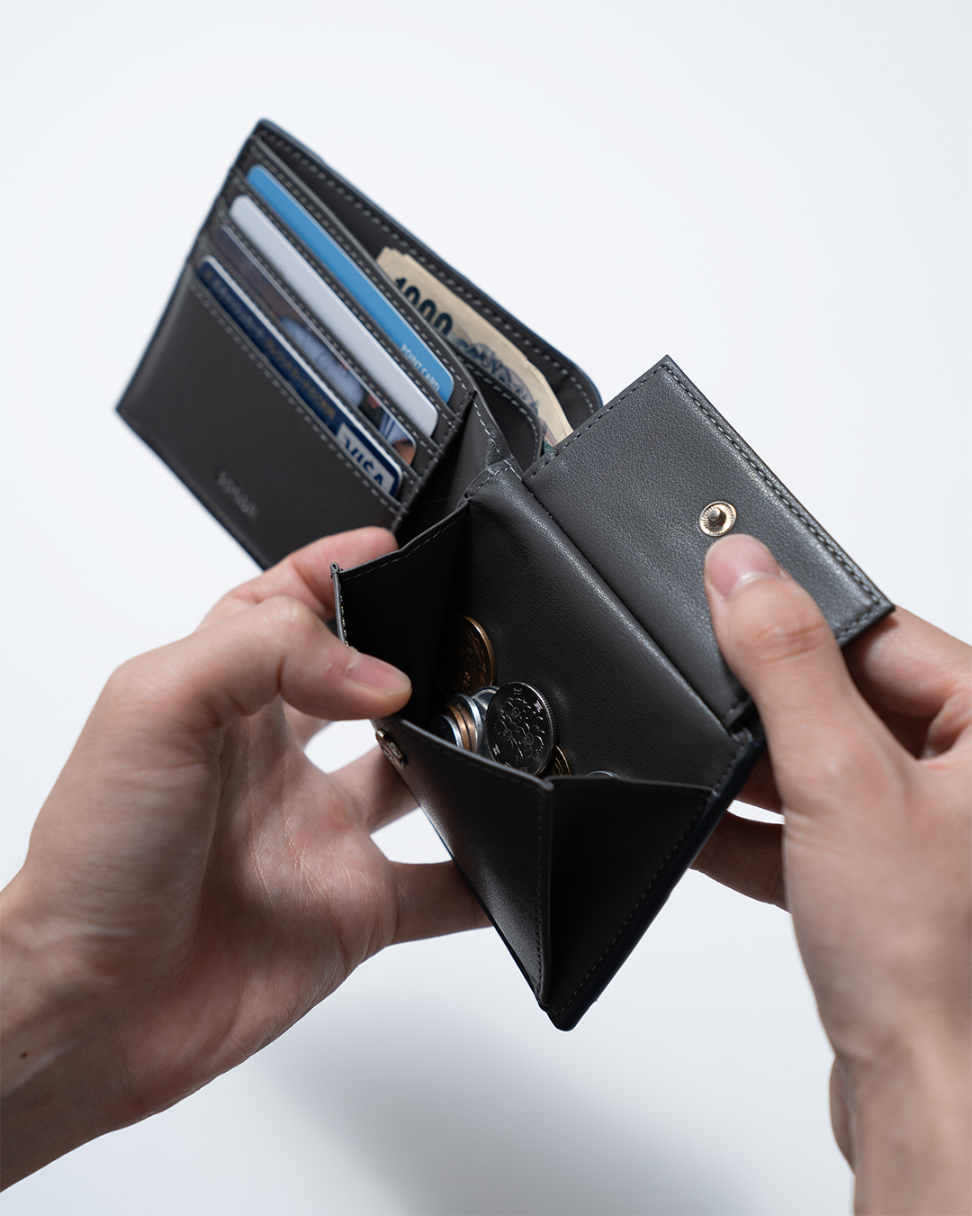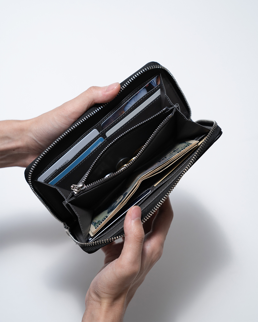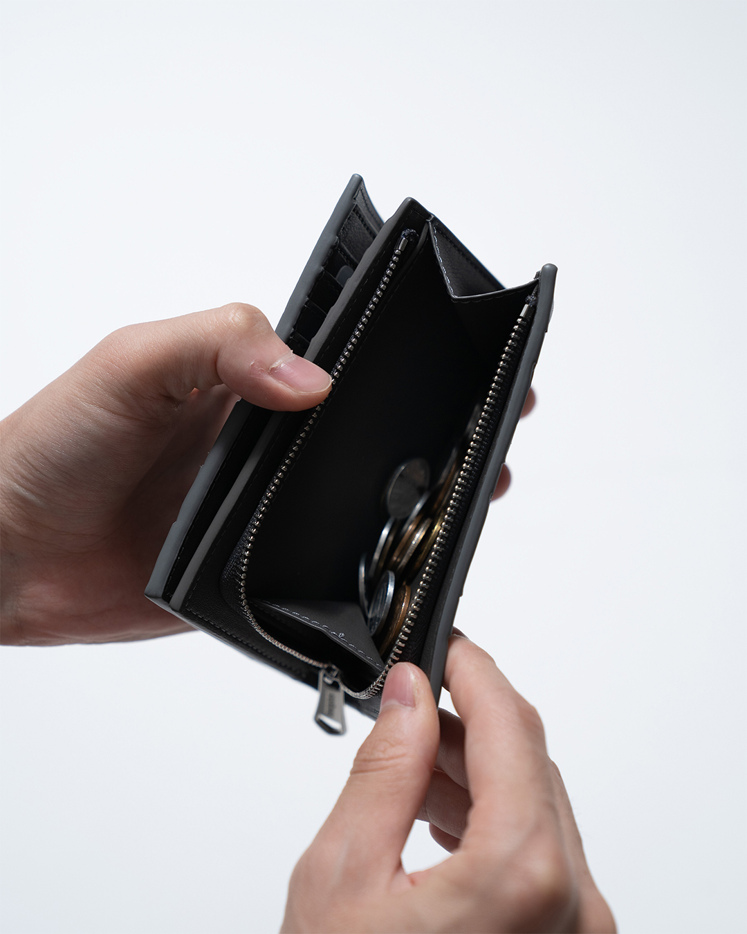 内装はマイクロファイバーレザーを使用し、必要最低限の収納力を携えてシンプルに仕上げており、スタイリッシュな印象をもたらします。撥水性も兼ね備えているためお手入れの手間がかからず、気楽に使っていただけます。まるで革のような高級感と質感ながら、革よりも軽く、耐久性に優れています。
