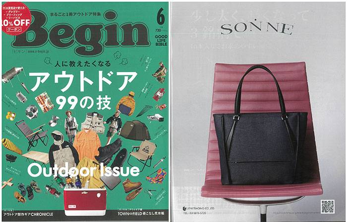 Begin 6月号にSONNE の「スーツ地!?」トートバッグをご紹介していただきました。