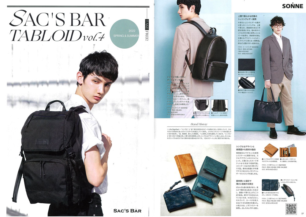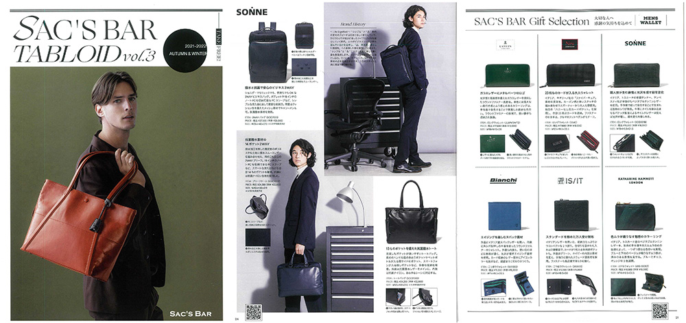 SAC'S BAR TABLOIDvol.3 にSONNE のCOMFORT(コンフォート)とお財布をご紹介していただきました。是非、チェックしてみてください。