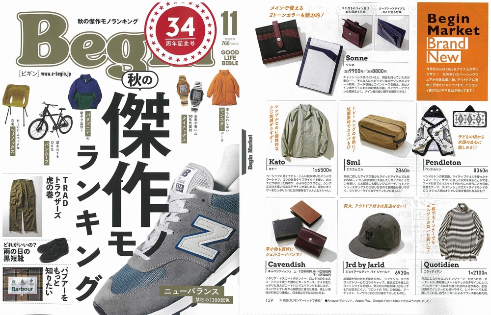 Begin11 月号にSONNE のスマート財布が掲載されました。