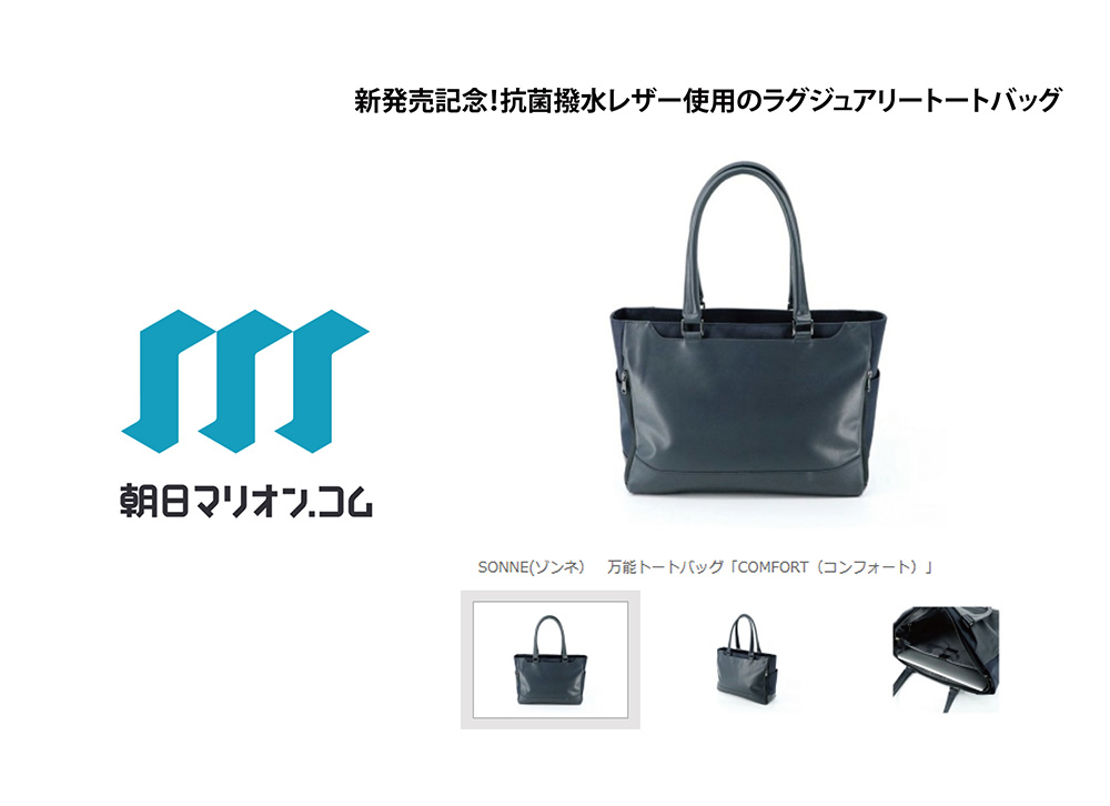 朝日マリオンコムにSONNE のCOMFORT(コンフォート)のレザートートバッグが掲載されました。是非、チェックしてみてください。