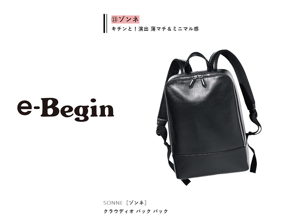 e-Begin にSONNE のCLAUDIO BACK PACK(レザーバッグ)が掲載されました。