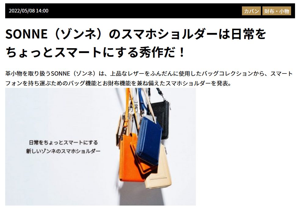 プレゼント記念日にて,SONNE(ゾンネ)のスマホショルダーが掲載されました。