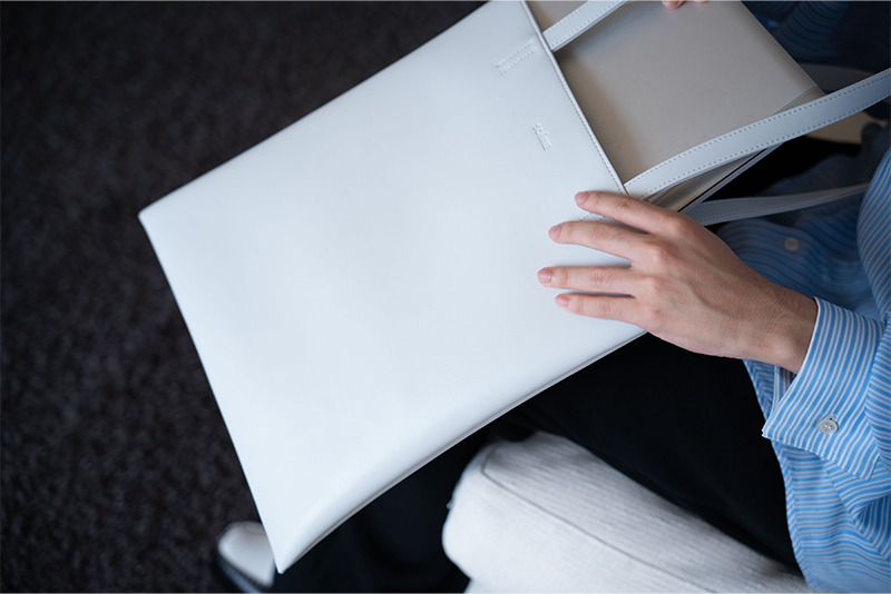 表面素材にはしなやかさと柔らかい肌さわりの「ユーロヌバッグ」レザーを使用。